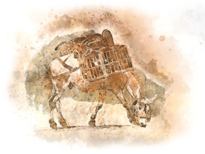 1877 – Os tropeiros usam mulas para transportar as mercadorias nas trilhas abertas entre vales, montanhas, à beira de penhascos.